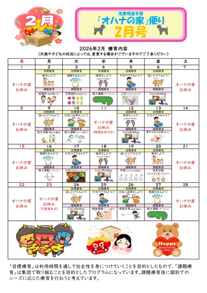 児童発達支援 オハナの家 令和8年2月活動プログラム!