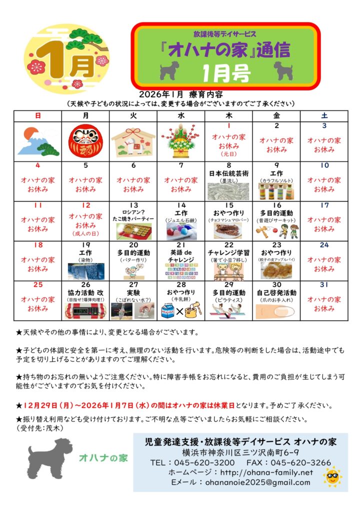 放課後等デイサービス オハナの家 令和8年1月活動プログラム!