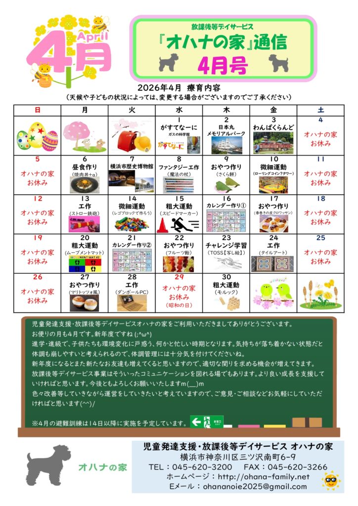 放課後等デイサービス オハナの家 令和8年4月活動プログラム!
